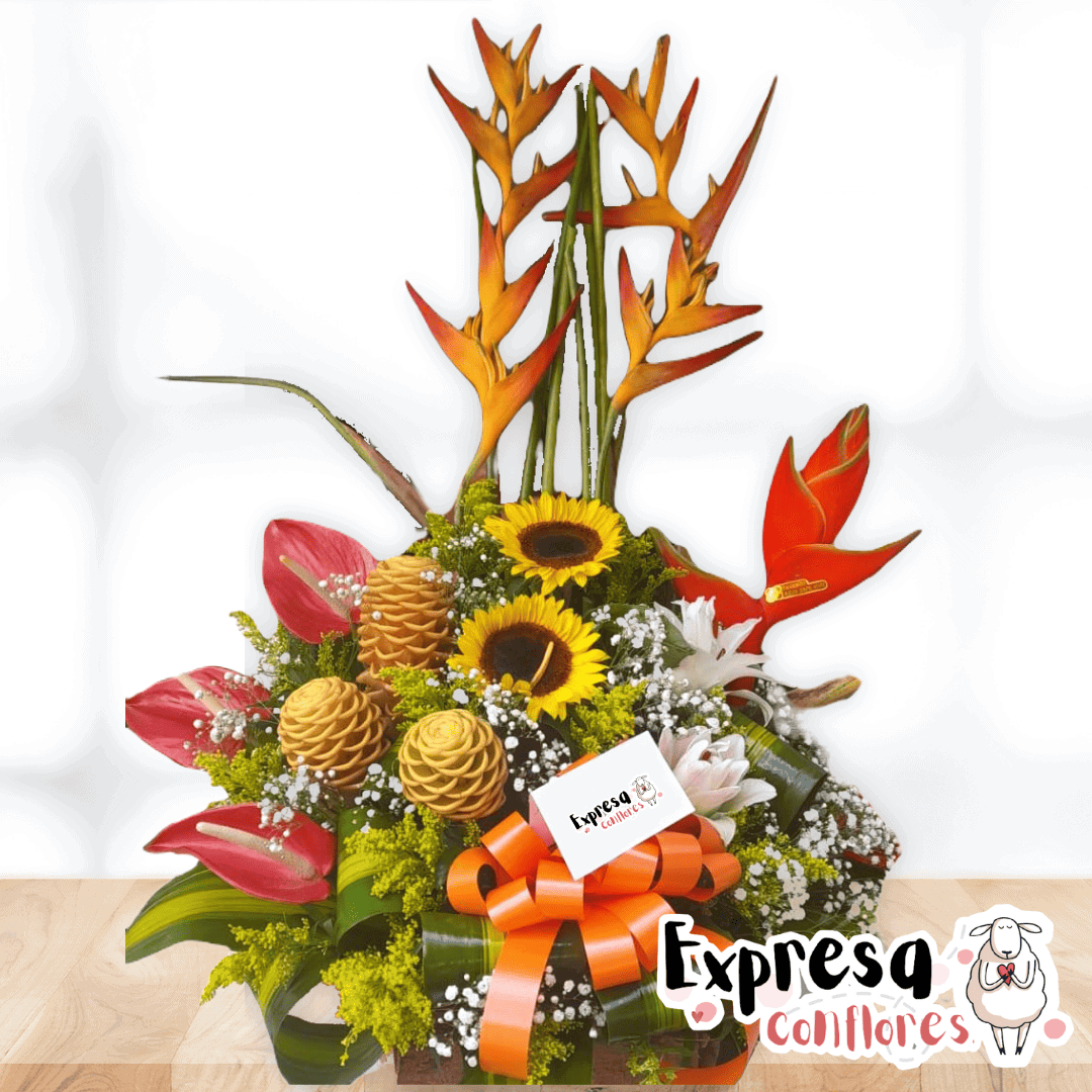 Cuando recibimos flores nuestro espíritu se llena de alegría y mucha energía, envía esta linda combinación de flores tropicales, ubicadas sobre una base de bambú o madera. Es ideal para cualquier ocasión. Sugerimos que acompañes este diseño con chocolates, peluches o vinos para hacer aún más especial tu detalle, en el siguiente paso de la compra puedes agregar a tu orden estos productos si lo deseas.